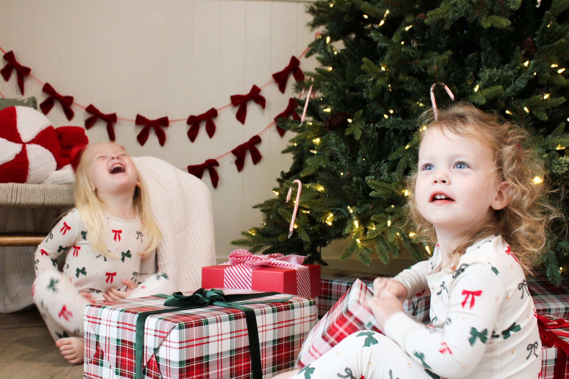Bring holiday cheer to bedtime with our Merry Little Bows two-piece pajamas! Featuring the classic red and green bow pattern from our beloved sleeper, these cozy PJs make every snuggle and Christmas morning extra special.